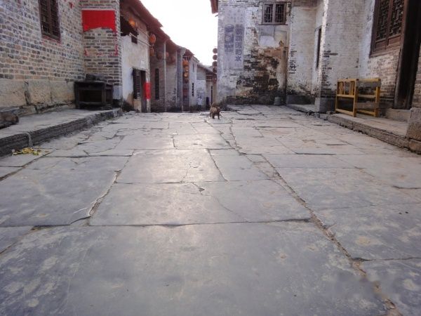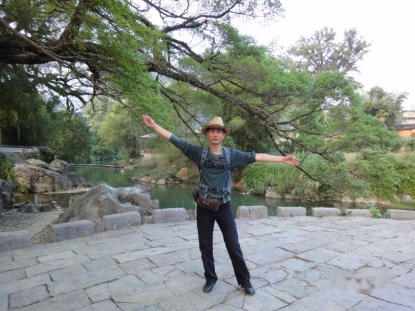 喝完饮料,偶就长驱直人,如入无人之境。哇靠、这都是什么呀?普普通通的农村村庄,在广西到处都是这样的烂地方,随处可见,三三两两的摊档卖着一些全国哪个地方都能见到的地摊货物,鸡、狗、牛在不宽的青石路自由散步、排泄。几处所谓的住宿、旅店里面黑乎乎的,只看到几样简陋、破旧的桌椅不规则的摆放,脱落的墙壁更显得阴暗与破败。行走之间还要随时注意脚下的地雷---禽畜的粪便。唯一可看之处就是几棵大榕树和一条还算可以的小桥,其他的就没有什么了。