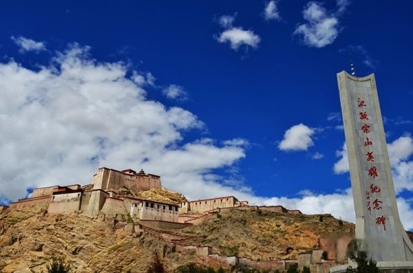 下午4点到达到达江孜县城,站在高高的宗山英雄纪念碑下,看着前方的宗山古堡,猛然想起了电影《红河谷》里就是以这里为背景,再现1903年英军入侵,江孜人奋起反抗,最后全部殉城的故事,红河谷里宁静扮演的藏家妹子最后引爆的炸药,还有她唱的那首《在那草地上》的歌又清晰地回响在耳边......
