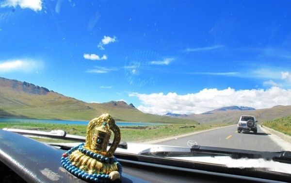 每天早上路第一件事,藏族师傅必定轻声念诵六字真言,师傅的车头一座像似藏传佛教十大法器之一的曼茶罗,只要阳光照射,便自动转动起来,伴着师傅的祈祷声,让我们也不由自主地安静下来,似乎已被笼罩在佛祖的庇护中......