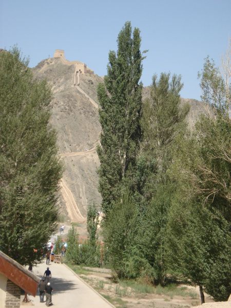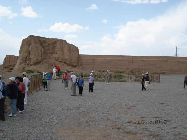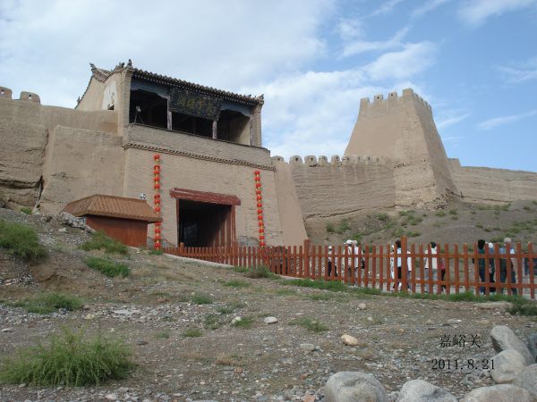 计划是8月20日晚上6点左右到甘肃省的嘉峪关,由于不断的停车,直到8月21日凌晨2点多才到嘉峪关火车站,住进宾馆,洗漱完毕,小睡了一会,“天下雄关”-----嘉峪关的旅游开始了。 大西北气候干燥,阳光热烈.嘉峪关城楼在蓝天烈日下显得格外的壮观。
