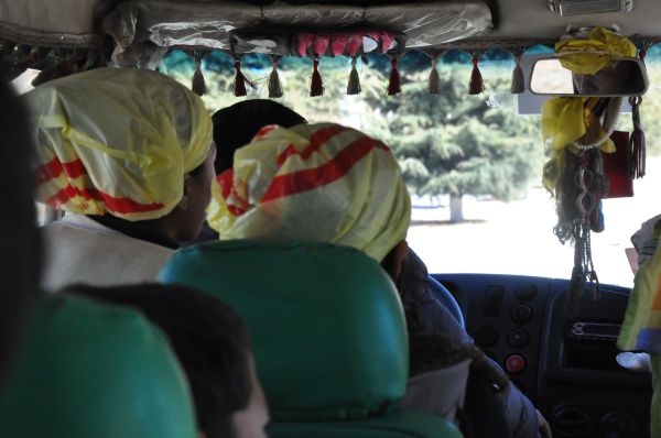 两个藏族姑娘刚染过头发脑袋套着塑料袋就上了车,一路上嘹亮动听的藏歌唱个不停。