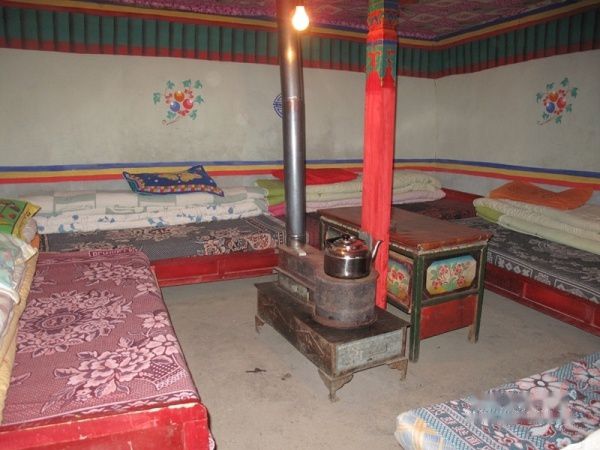 大通铺,我们今晚5人一间,尽管有点窄,被子有点湿,但各自带有睡袋,倒也凑合,而洗澡肯定是不可能的了,用湿纸巾胡乱抹了一下了事。今晚所处海拔将近5000米,有几个人均感不适。我也觉得有点累了,想早点歇息。打着手电披着羽绒摸黑到客栈外解决问题,可抬头看到满天繁星,顿时又清醒了了,傻傻地看了好一会,终究抵不过刺骨的冷风,赶紧跑回客栈,大家早已钻进睡袋,蹑手蹑脚躺下了,看了一下表:十点三十分,今晚又早睡了!