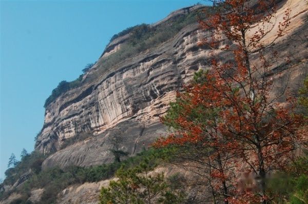 枫叶与丹崖赤壁相映成辉