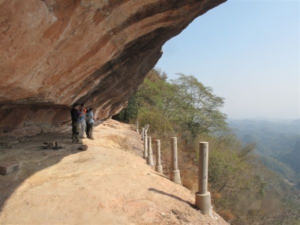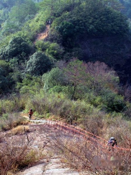 巴寨感觉上比前一天的金龟岩要险一些,幸好有扶栏,必须小心翼翼,手抓铁索或扶栏,碎步而上,从上望下看就是万丈深渊,即使没有畏高也心生寒意
