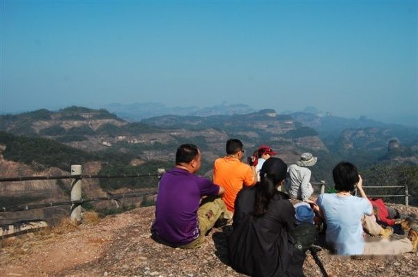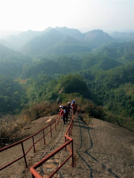 终于登上金龟岩顶,极目远眺,只见群峰林立,形态各异,直立的、堡垒状的、 宝塔 状的,四壁陡峭如削,无比壮观。不愧为广东省四大名山之首,成为中国第8项世界自然遗产也是当之无愧的。