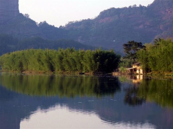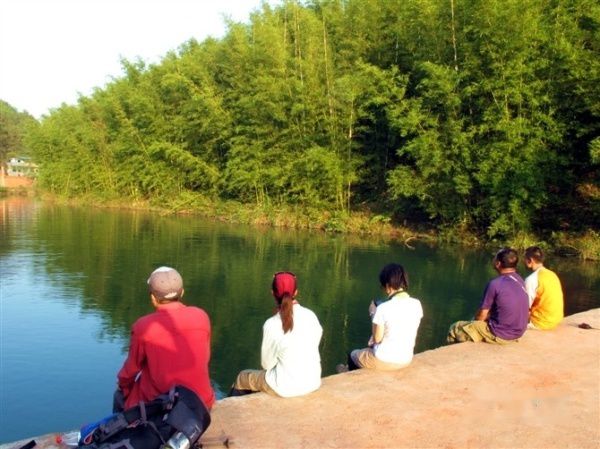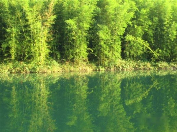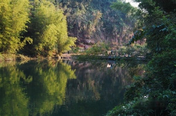 走出山谷,风景变换,此处应该是锦江的支流吧,但见朱碧辉映,翠竹夹岸,秀色可餐。