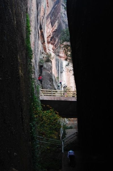 此处两旁岩石像合掌一般,只容一人通过