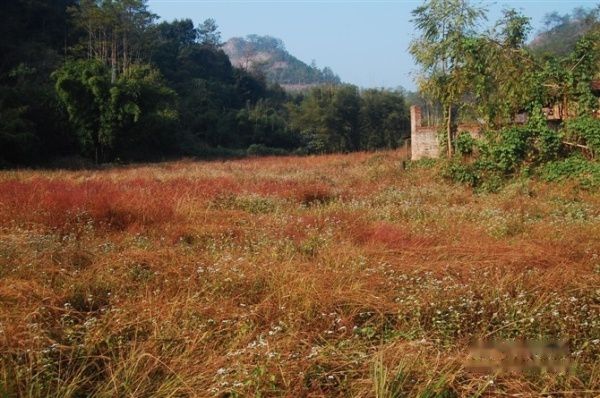 一滩红草地,点缀着白色的野花,煞是好看