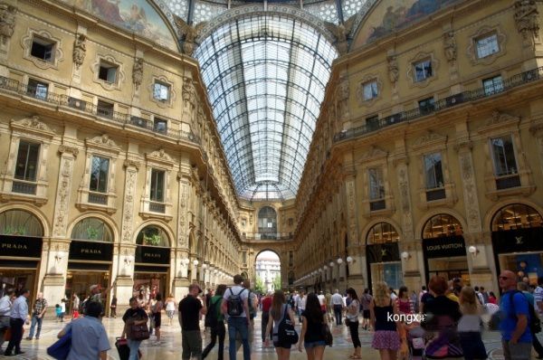 大教堂的一侧就是十字形的维托·艾曼纽二世拱廊(Galleria Vittorio Emanuele II),非常的优雅,内部有多家咖啡馆、服饰店。