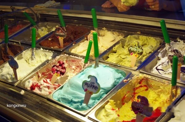 饭后吃意大利的冰激凌,最有特色的口味就是开心果味(Pistacchio),味道真不错。
