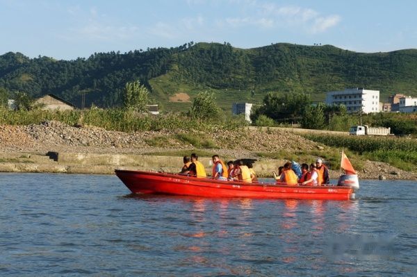 集安与朝鲜隔鸭绿江相望,对面是朝鲜的满浦市,边境线长达203公里,是我国对朝的三大口岸之一。鸭绿江边境游是集安旅游的另一张名片。鸭绿江发源于长白山,流经集安这一段算是中游吧。江面不是很宽,国境线在河的中间,但我们的游船可以越过中线,沿朝鲜一边行驶,离河岸也就是20-30米距离,能很清楚地看到对面朝鲜的情况。