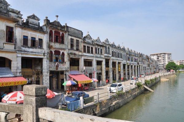 赤坎古镇,始建于清朝顺治年间,因建于赤土高地而得名,现存的街道建筑大多是19世纪末20世纪初由关族和司徒氏两大家族华侨出资兴建。赤坎四周江水环绕,古榕婆娑。堤西路.中华西路.堤东路.中华东路等600多座骑楼依水而建,串联出一道独特的侨乡景象。