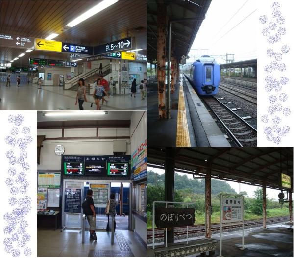 一路顺畅,8:34左右便到达登别车站。我兴奋地拉着行李,看着眼前这颇有些老旧的车站。列车已去,铁轨静悄悄地伸向远方,细雨将歇,清爽无比的空气刺激着鼻腔,总觉得想如同雀鸟一般欢蹦乱跳,四处觅奇一番。