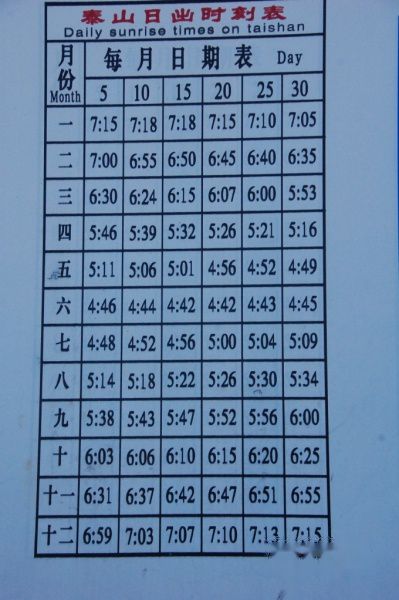 日出时间表: