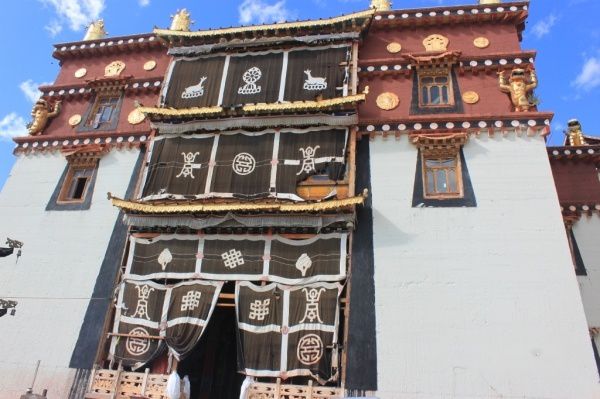 第一天,我们去了雄古观景台,看玉龙雪山,到了雄古好兴奋啊,蓝天白云雪山练成一片,好美,然后我们去到长江第一湾,风景很美,不过是旅行团必去的景点,所以很多人. 一边欣赏美景,一边听扎布介绍,途中看到很多藏房,精美的雕刻,藏房屋顶上有插小旗,插一面旗帜,表示家人有喇嘛;插两面旗帜,表示家里有当官的;插三面旗帜,表示家里出过活佛。祖国为了拉拢安抚藏民,凡在屋顶插中国国旗的,送太阳能热水器,不过还是有很多没插的.......