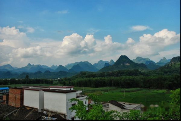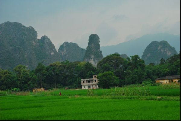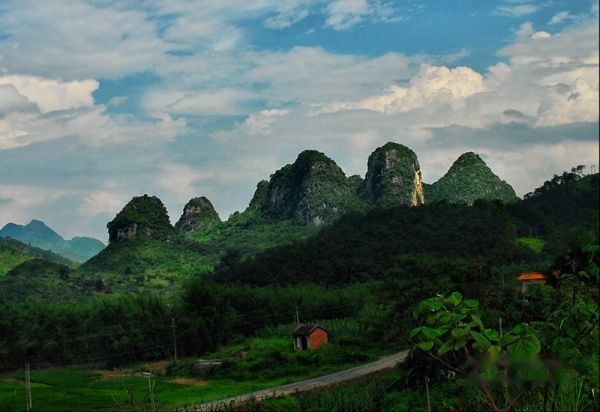 从浸潭镇右转九龙镇,就是著名的南天第一峰林风光——英西峰林。因为今天要赶到阳山,所以八点半就出门了,今天户外天气放晴,宁静而平整的乡村公路倍感宜人。