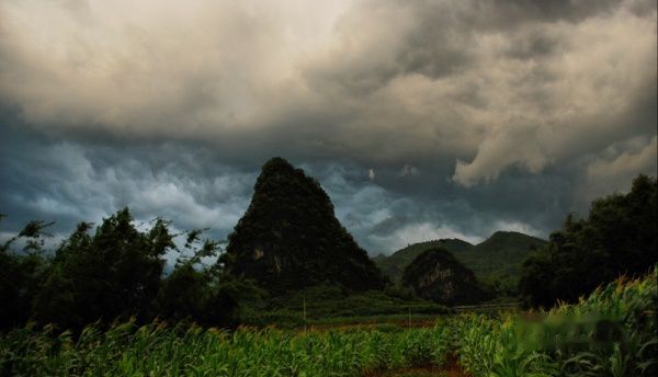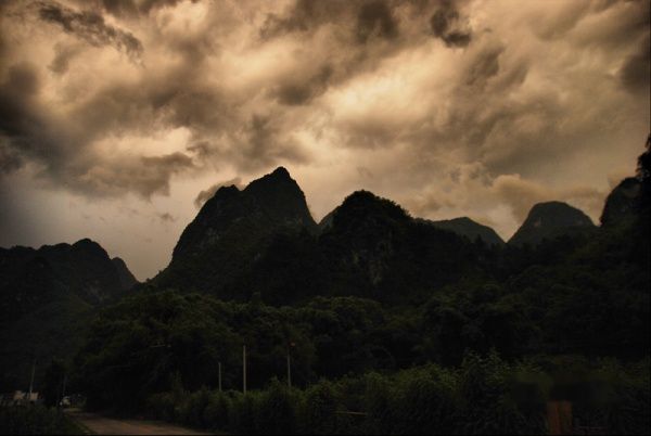 从杜步到水口途径阳山小桂林景区,傍晚六点半了,景区大门早已关闭,能看到景区里有一条小河,风景尚可,但远远不如第二天经过的连江画廊。离开小桂林不久天色大变,远处一片黑压压的乌云正往这边飘来,于是我再次加速,希望能在暴雨来临前赶到水口镇。傍晚的天空此时呈现出一种诡异的明亮,落日晚霞与山雨欲来的云层在狂风中融合成一幅的绝美的油画,我两次停下车来,按下快门,把这一瞬间变成永恒……