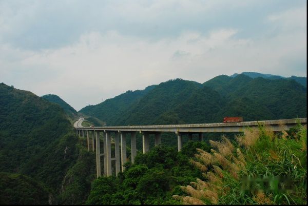 从小村庄出来后走过一段很爽快的下坡路,便到达杜步高速收费站了。壮观的杜步大桥——后来查资料才知道,杜步大桥的桥墩最高高达110米,为亚洲最高的高架桥!行程第四天经过的佛冈金坑大桥同样高得吓人,但论高度还不是杜步大桥的对手!
