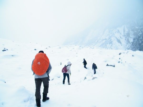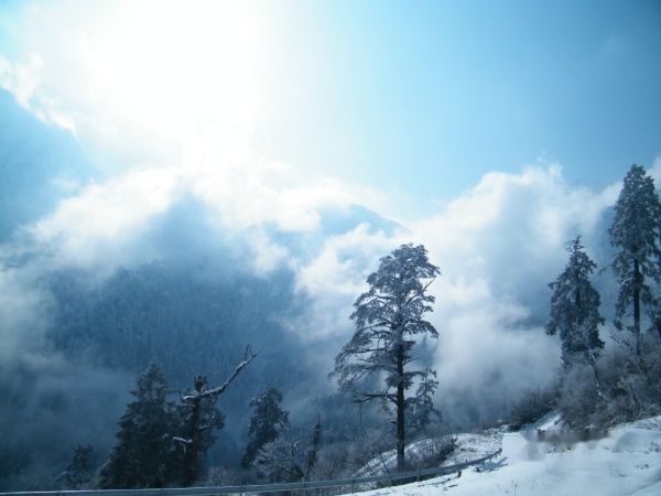 虽说今年杭州的雪足够大也足够猛烈,但是海螺沟的雪依旧激起了我的兴奋点,没有见过东北的林海雪原,但我权且把这里是当做是真正的雪原了。走进冰川游步道,我们又遇到了先前的小情侣,于是我们决定同游冰川。无非是雪景,但说来也怪,每一处都有风景,一部相机似乎已无法完全记录这里面的美景,看到的越多,其实意味着留下更多的遗憾。行了个把小时,看到冰川谷底了,虽然在雪雾下有些若影若现。