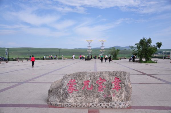 半小时不到到了室韦汽车站,车子要停留片刻,9点发车。沿室韦的汽车站前那条街走到头,有一个小广场,广场上立一块巨大的石碑,上面刻着“蒙兀室韦”,
