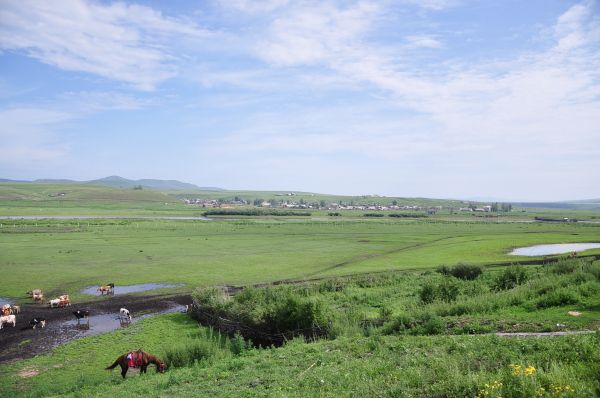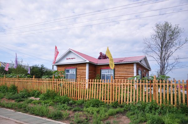 室韦就像个打扮在橱窗里的芭比娃娃,个人感到商业化太浓,稍稍看了下感到没必要再留下,于是决定去恩和。由于这时座位已满,卖票人开始不让我们上,最后我俩和上海人站着到了恩和,其他三人直接去了额尔古纳。