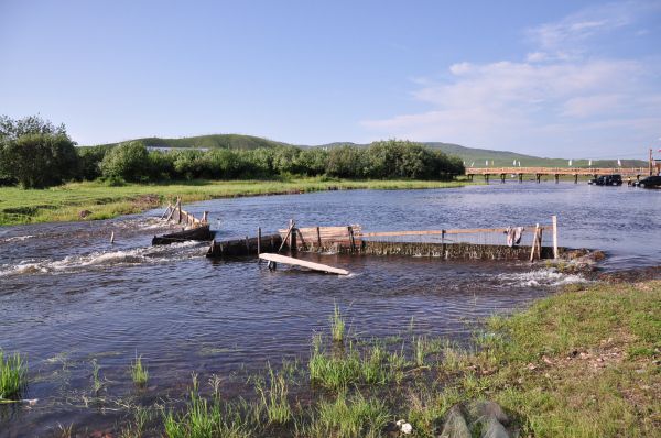 吃完饭,我们继续闲逛,发现恩和满村也都是家庭旅馆,情况与临江差不多。先来到村后那著名的小河上欣赏河畔风光。河上有一座小木桥,桥那头是一个度假村。从河边可以看到恩和村的全貌。