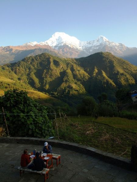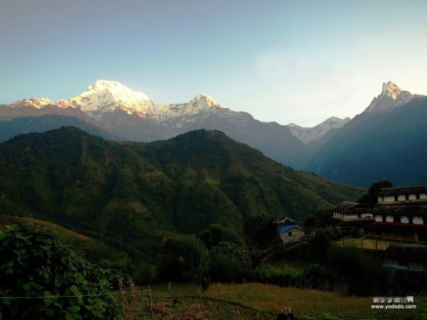 我们下榻的小客栈在村头(若走反向路线就在村尾),正对着海拔6977米的鱼尾峰——喜玛拉雅山系中最优美的山峰,鱼尾峰的尖角显得尤为挺拔俏丽。客栈干净简朴、乡野味十足,又不失情调。