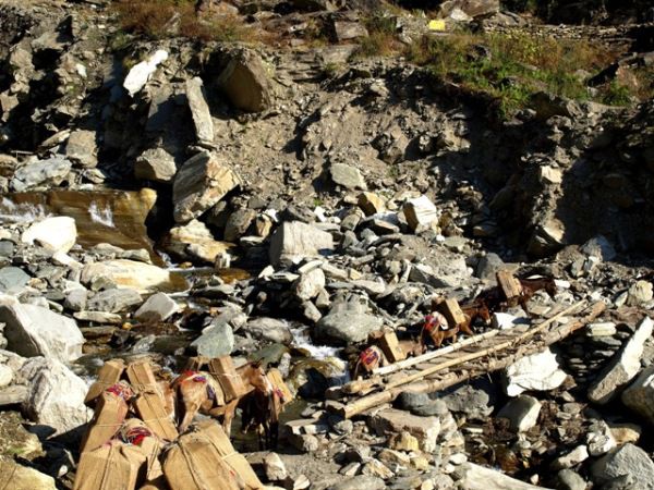 虽是一路下坡,行走较轻松,但也数次遇塌方。
