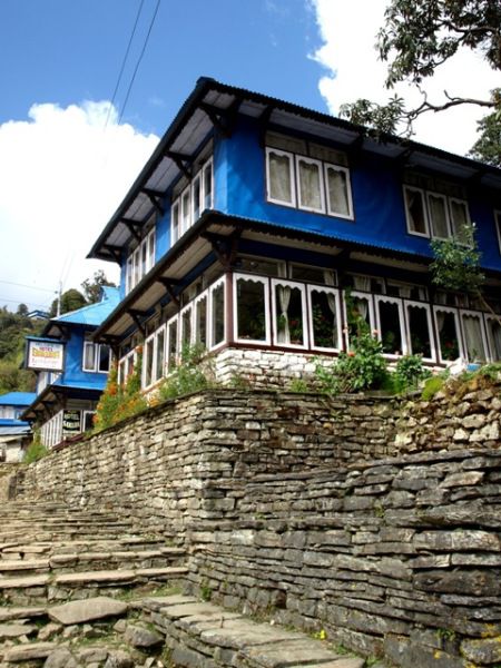 中午一点半就抵达了Ghorepani下榻的旅馆,我们又速度了一把,提前到达目的地。我们是第一批到达的旅客,要被子,被子很干净,洗热水燥,水流大又热,还免费供应潘婷洗发液呢。洗完澡还睡了个午觉。午觉醒,突然听见门粤语,心中大喜,推门终见国人,那个相见恨晚!