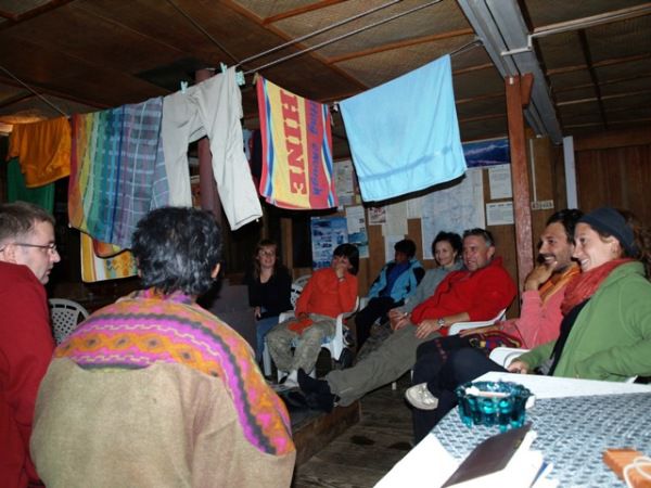 晚上,小镇没有娱乐,晚餐就成了最好的享受。法国、中国、美国、荷兰等4、5个国籍的游客都汇集在二楼餐厅用餐。荷兰团的四男三女,在餐厅大嚼。先一道道的上汤,随后上正餐+酒和饮料,最后,甜点+水果。前面的属团餐,后面的是各自零点,需另外付费。带队的尼方中年导游忙着餐后与各位对账。一位女士的名字很长,导游问了几遍,还是记不下来,不是记住了后面就忘了前面,要不就是记住了前面,后面的根本来不及入耳。天性乐观加上酒精的作用,荷兰人开起了玩笑,让导游简化记为蒙娜丽莎算了,见导游还是茫然,干脆精简为猴子了,因为开头都是Mon…(众人皆笑),又根据名字的谐音让导游写一男士的名字为唐老鸦(大笑),称一位娇小女士为“零钱”,众人暴笑,唯有中年导游哭笑不得。快乐就这么简单,只要你想。快乐无国界,像熊熊的炉火温暖着在场所有人的心身。明天老天会给我们一个惊喜吗?