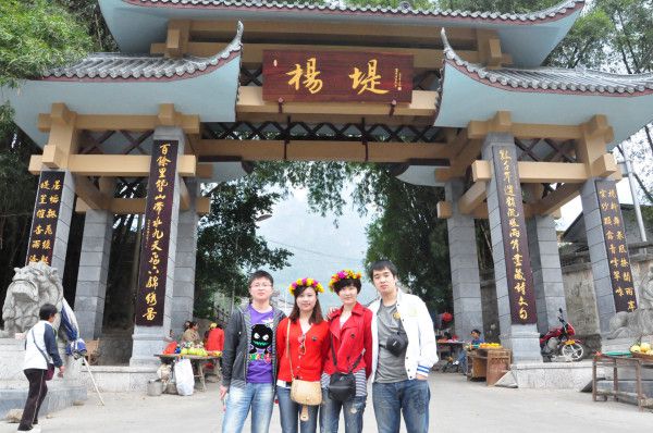 08:10 在阳朔汽车站和小白、小张、小冯会合,坐上了去杨堤的班车。用了1个小时多点,到了杨堤。负责今天漂流的杨师傅已经在等我们了。