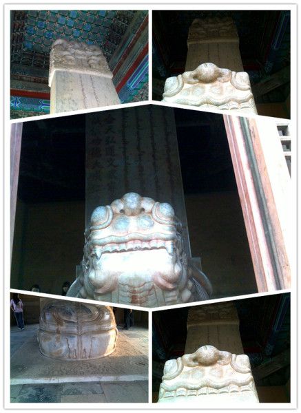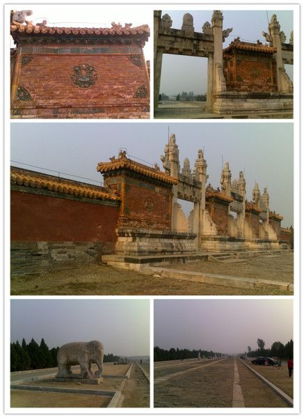进入大红门后沿着路可以远瞩到坐落对称的石像生。均由一整块巨石雕刻而成,人与动物的友好矗立着经历风雨。凝重的趟过皇族行走过的石砖路上,从龙凤门中也能观察出岁月的沧桑。
