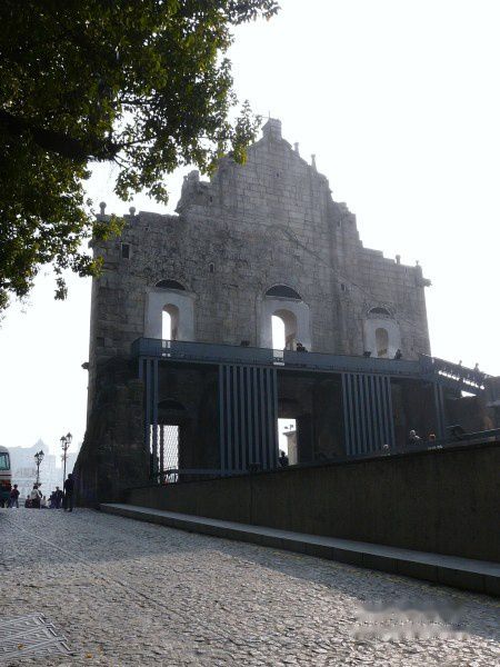 沿著大炮台的小徑下來, 原來旁邊就是大三巴了! 但係超多人!!! 我地就留在小路上, 從另一個角度欣賞大三巴。咁睇大三巴都好靚, 有點神秘感。