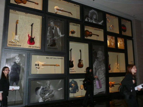 大约在门口站到20:00左右,终于可以进去,我们第一时间就是行去周围影下些明星记念品、例如有結他……