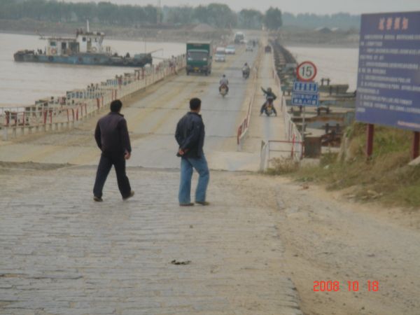 黄河浮桥!!!! 一路无话,中午到达泰安,又简单吃了午饭,继续上路。