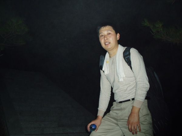不时有下山的游客,打个招呼,问下距山顶还有多远,有的说三个小时,有的说两个小时,唉不知到底有多远,眼看着天黑下来了,山里起了大雾,能见度不到五米!!!。。。。。。。