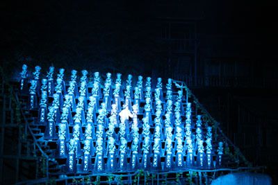 如果要我说《天门狐仙》最吸引人的是什么,我说有三个方面:布景、灯光、民歌。整个舞台就是依山而建,露天的大峡谷全部都是舞台,仿佛天为舞台穹顶、地为演出场地,这手笔和气魄却是我看到最宏大的;相应的,整个大峡谷,几百米高下落差的崖壁上布满各种灯光,中央舞台更是绚烂斑斓、瑰丽无匹,特别是在演出最后一幕,整个峡谷里的灯光全部亮起,放眼望去铺天盖地地绝美气势,震撼人心;至于民歌,果然是应该在山里唱得,歌词火辣大胆,歌声雀跃灵动,仿佛山间鸟鸣回转,动听悦耳,这也是让我第一次体会到民歌的魅力。《天门狐仙》值得一看!