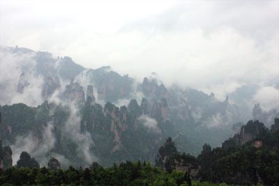 催着山民做饭,赶着出去玩,紧巴巴得直到12:00才出发,就近游览了所谓《阿凡达》的外景基地——袁家界,景色果然壮丽无比,一座座山峰都如刀削一般,特别是在雨天,云雾很浓,仿佛仙境。只是游人太多,而山上太冷,一定要有件挡风保暖的外套才好,雨衣最好也买带裤子的。