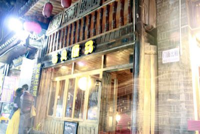 从张家界到凤凰大约四个半小时。赶到凤凰时,天已经暗了下来。只是满大街酒店让人摸不着北,酒店留的地址竟然没人知道,只能打了电话,却没想到店主很热情地过来接我们了。穿过沱江的时候有些小失望,江水里杂物很多,不甚清澈。