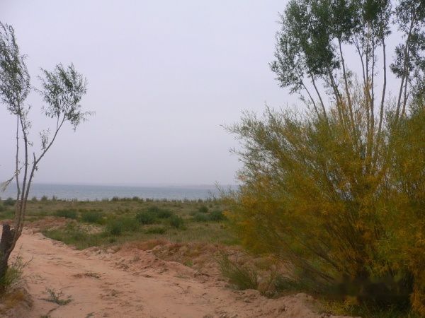 黄沙滩,绿淖面,浩瀚湖泊十里寛.
