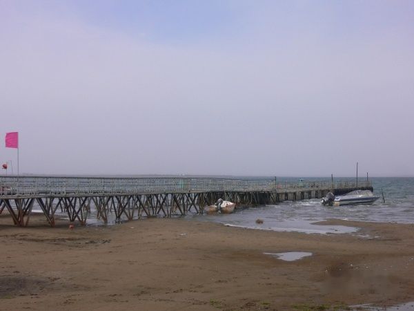 栈桥长,多船帆,白浪翻滚涛拍岸.