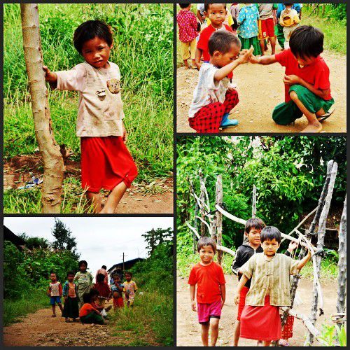 进了村庄,有一群可爱的孩子们在玩耍,孩子们见到我们,先是望着我们,当我们走近时,竟然对我们说”Bye bye”,他们很乐意对外国客人说”Bye bye”,也许他们并不知道”Bye bye”的含义,他们只觉得这两个词最容易念,最能表达他们的好客之情,在中国的年轻一代,分别已经不用“再见”了,而是用”Bye bye”。
