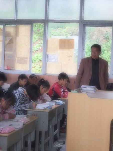 我们把捐赠的学习用品拿到了学校的接待室,邓校长和张主任接待了我们,随后张主任带我们参观了学校,而邓校长又去教室上课了。这个学校一共有67个老师,1000多个学生,采取寄宿制,学生最远的是30公里外。学生住宿学费全免,每人每学期交100元杂费,而40%的学生可享受每年1000元的生活补贴。学生开学后,家长一般就不管了,生病或其它事项均有学校解决。学校的食堂和学生宿舍十分简陋,十多平米的宿舍一般有七张双层单人板床,但每张板床上要睡两个孩子,食堂的饭桌上巴东一中换下来的课桌,造宿舍的贷款到现在还没有还清,学校目前所谓的多媒体教学楼实事上每三个学生才能用一台电脑,因此是徒有其名。但老师几乎没有了假期的概念,都住在学校里,每天六点开始上课,下午五点开始轮流下课(食堂无法满足需求),晚上上四节晚自习,九点熄灯。学生的自理能力很强,这是城里孩子无法体会的。学生生活十分单调,但据说成绩是巴东前三位的,今年有37个学生进了重点高中。由于当地英语老师师资不足,因此该校目前有四个年级。