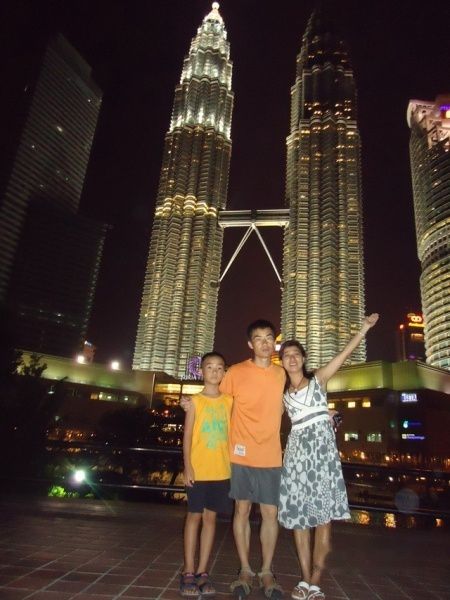 下午3点多,我们又出动了,前往双子塔。这次我们坐轻轨,出站就直接来到双子塔下了。双子塔就是留个影,证明已经到过吉隆坡而已。这里是吉隆坡的高级商务区,类似广州的天河北。背后有个小公园,我们在这里逗留了一个多小时,为了等日落后拍夜景。晚餐我们在双子塔的4楼解决,这里的套餐甚至比广州商业区的套餐还便宜。吃完晚餐后我们又来到小公园拍照。可惜在我们拍照时其中一座玉米棒正好熄灯了,拍出来的效果不好,挺遗憾的。要是早几分钟就能拍到较好的夜景了。