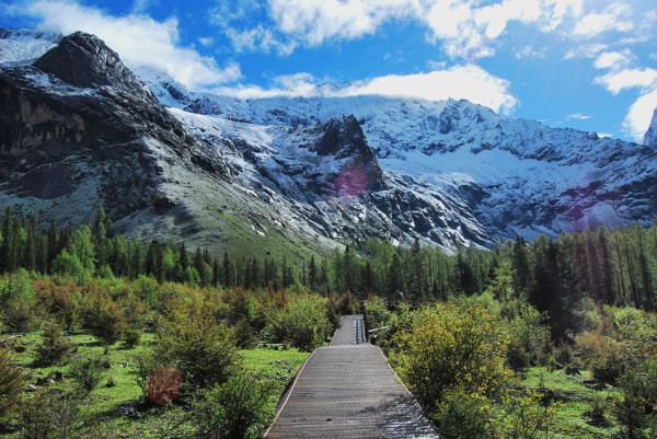 4、很多驴友喜欢徒步四姑娘山,通过实地考察长坪沟和双桥沟的情况,不想虐待自己又想欣赏美景的话,就选择双桥沟吧。你可以6点之前进入,也许就不必买门票了,进去后除了公路就是栈道,双桥沟的栈道一直修到了最里头,足可以使你在充分享受徒步快乐的同时饱览美丽景色。