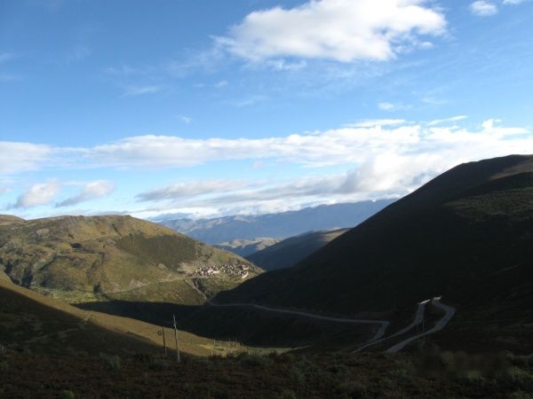D3: 行程:新都桥-高尔寺山(4412m)-雅江-剪子弯山(4659m)-卡子拉山(4718m)-理塘-海子山(4685m)-桑堆-稻城,宿稻城亚丁人社区。包五菱7座小面包车。 今天一早我们的六人小部队胜利会师,早上九点多出发,中间翻越高尔寺山,剪子弯山,卡子拉山。卡子拉山最高4718km。晚上九十点钟(?记不准了)到。中间一直赶路,仅理塘停留飞速解决一顿午晚饭 。貌似未堵车,路况。。。。新都桥到理塘,谁坐后排谁知道!以至于后面的几天一想到还要这样原路返回,心里很犯憷!以至于后来,我真心觉得我的五脏六腑已经被颠错位了,真的。很痛苦。但是风景,这一路,也狠美狠美!(就算从亚丁回来见了三座神山,已经曾经桑海了,这一路还是很震撼视觉。)