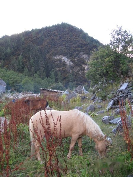 碎碎念:这一天上午坐车下午晚上徒步,其实想来挺轻松的一天,但是感觉冲古寺珍珠海都不够给力瓦。大家都觉得更像是个森林公园而已。晚上走回龙同坝,饭桌上大家议论着第二天行程。我好累好累,感觉说话吃饭的力气都没有,只想赶紧吃完回去睡觉。好像前几天累积的疲惫同时爆发了,整个人像个干涸已久的小树叶蔫了。大家也都很累决定明天龙同坝就骑马上去,爬山也租马来回。我有心无力懒得搭话,心里感觉好不甘!长途跋涉千山万水的来到这,怎么能就骑马过去呐!我要徒步瓦!!但是确实又很累,腰酸背疼,好像整个人要散了,心里却又不甘心,感觉自己好衰啊,真是纠结的要死!这是怎么样的自虐精神哪!住的地方洗漱只有哗啦啦透心凉凉刺骨的山泉水,没有勇气洗涮收拾东西准备睡,发现相机电池充电器落在稻城了,幸好同行的兄弟姐妹有干电池!:)。 晚上睡觉整个身体碰到床上那一刻,我就决定好吧租马上下山!因为整个人躺在床上就千斤重担终于放下一般沉沉的再也起不来也不想起来了,腰只要一伸直就酸痛的要死,好像一个圆规锈死了根本打不开到180度,头昏昏沉沉,想一想这几天来来回回一直坐车这么折腾为了什么?忽然我好想回家!心底那点小小的意志力和坚持完全支撑不了摇摇欲坠的身体,崩塌了。 后来想想这一天确实是最难熬的一天。