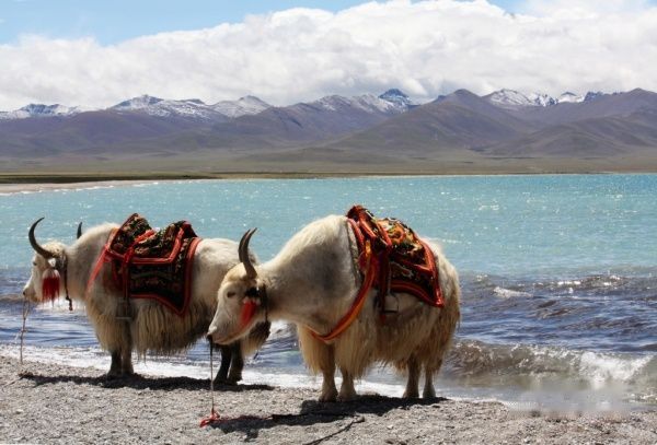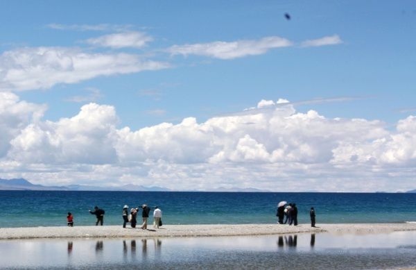 珍稀白牦牛自然成为纳木错一景,很多游客争抢着骑上牦牛在纳木错留影。可是我看到在靠近岸边有牦牛待的地方,泛过来的湖水是黑色的,我不知道是不是牦牛的排泄物污染了湖水?虽然,那木错湖畔除了牦牛,没有其他可能污染湖水的商业化旅游开发项目,虽然,高原牦牛的排泄物也属于“无污染”的东东,总感觉这样圣洁美丽的地方,不该被任何事物所污染,哪怕只是视觉上;总觉得骑上牦牛在纳木错留影不如骑上牦牛在纳木错周边的草原上留影更合适,所以,虽然只要花10块钱就可以骑上牦牛拍很多的照片,但我还是拒绝了。