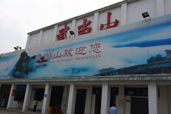 坐火车到武当山站下,5元坐中巴到风景区,但是当地恶势力居然说中巴抢他们生意不让路~!公安都管不了``只能下来自己走到路口坐到镇上再走过去,价格一样,终于到了门口`