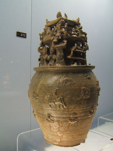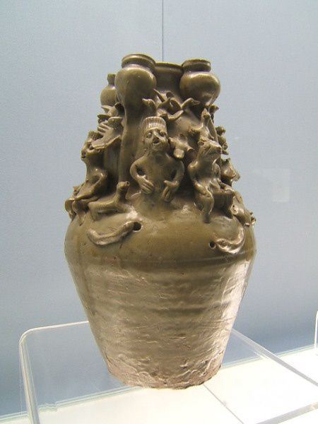 堆塑罐形制意味为亡者的灵魂归所,实际上是对当时建筑模样的宗教化改造。堆塑罐上塑造的形象十分丰富,有人物、动物、神兽、楼阙等等,这些内容大多与佛教有关。从堆塑罐出现及延续的时间看,其出现时间与分布的范围基本上与佛教在长江中下游地区传播的情况相一致,可以说是佛教传播过程中重要的佐证之一。